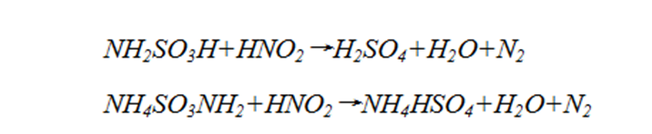 (7)有關資料介紹:水樣中 20~80mg/L的亞硝酸鹽會使COD按常規(guī)的方法無法準確測定,一般可采用氨磺酸和氨磺酸銨來消除干擾,主要是里面的氨基起作用: